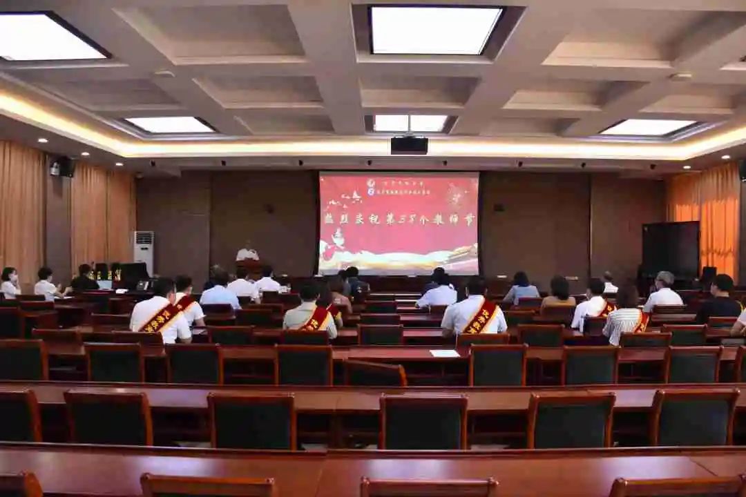 )召开2022年教师节庆祝大会,总结一年以来学校取得的成绩,对荣获“优秀教师”“优秀教育工作者”荣誉称号的教职工进行表彰,同时向“从事电大教育事业满三十年”教职工颁发纪念奖杯。全体校领导,优秀教师、优秀教育工作者及“从事电大教育事业满三十年”教职工代表在北陵校区现场参会,其他教职工通过腾讯会议在线参加大会。大会由党委副书记任庆国主持。