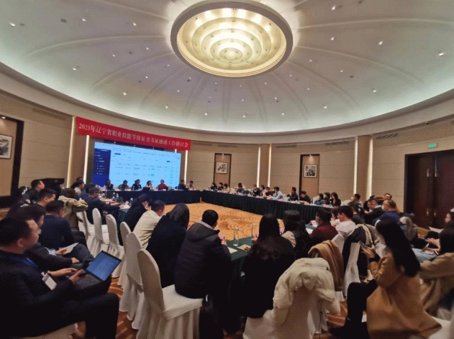 研讨会设案例分享、专题研讨两个交流环节。辽宁省学分银行首批书证融通学习成果转换合作共建单位北京赛育达科教有限责任公司、名将宠美教育科技(北京)有限公司、新道科技股份有限公司、广州中望龙腾软件股份有限公司、北京中福长者文化科技有限公司代表分享了在辽宁省落实书证融通工作的经验做法;参会代表就书证融通工作平台使用、共建共享实训考核资源等议题进行集中讨论与交流。