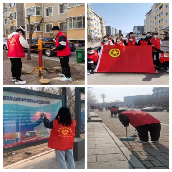 3月18日,学校青年志愿者协会组织青年志愿者开展“学雷锋 进社区”志愿服务活动。青年志愿者走进居民小区开展拾捡垃圾、清扫地面、打扫小区卫生、擦拭运动器材、宣传环保理念,志愿者“红马甲”成为一道靓丽的风景线。