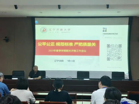 7月11—13日,辽宁开放大学统一组织全体系教师于北陵校区开展开放教育期末集中评卷工作。各学院、专业教学团队及教务处等部门共计200余名教师参与评卷及质量检查相关工作,副校长李冬青出席评卷工作会议,校长助理赵国军主持。