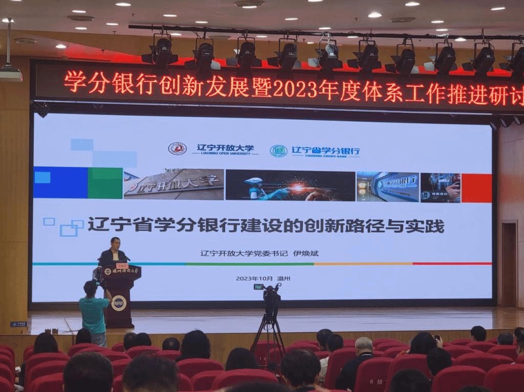 10月24-25日,学分银行创新发展暨2023年度体系工作推进研讨活动在温州举行,国家开放大学党委书记、校长王启明,我校党委书记伊焕斌,教育部职业教育与成人教育司高等继续教育处处长董振华,温州市政府副市长出席会议,44家省、市级开放大学,部分职业院校、行业企业和学分银行服务体系领导、专家200余人参加会议。我校党委书记伊焕斌作专题发言。