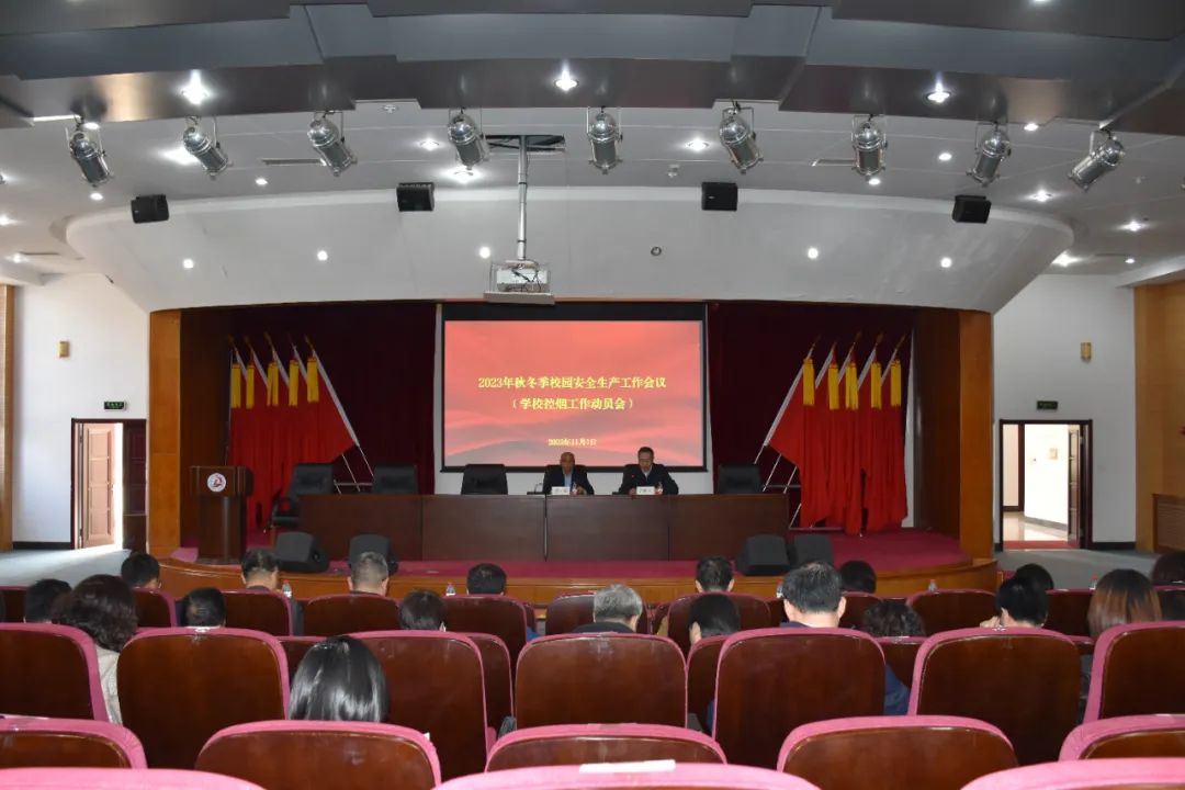 2023年11月1日,学校召开2023年秋冬季安全生产工作会议暨控烟工作动员会。校长任庆国出席会议并讲话。副校长冯继光主持会议。