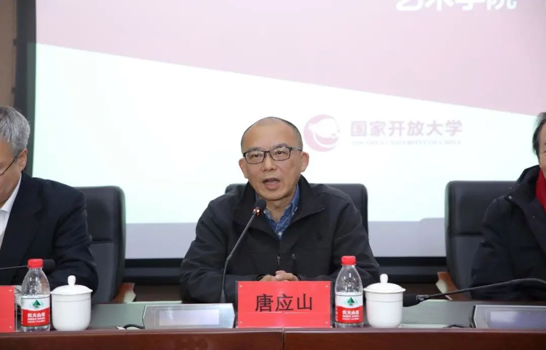 唐应山代表国家开放大学艺术学院对本次活动的举办给予高度肯定,同时就国家开放大学艺术学院成立的背景和书法学专业开设情况进行了详细介绍。