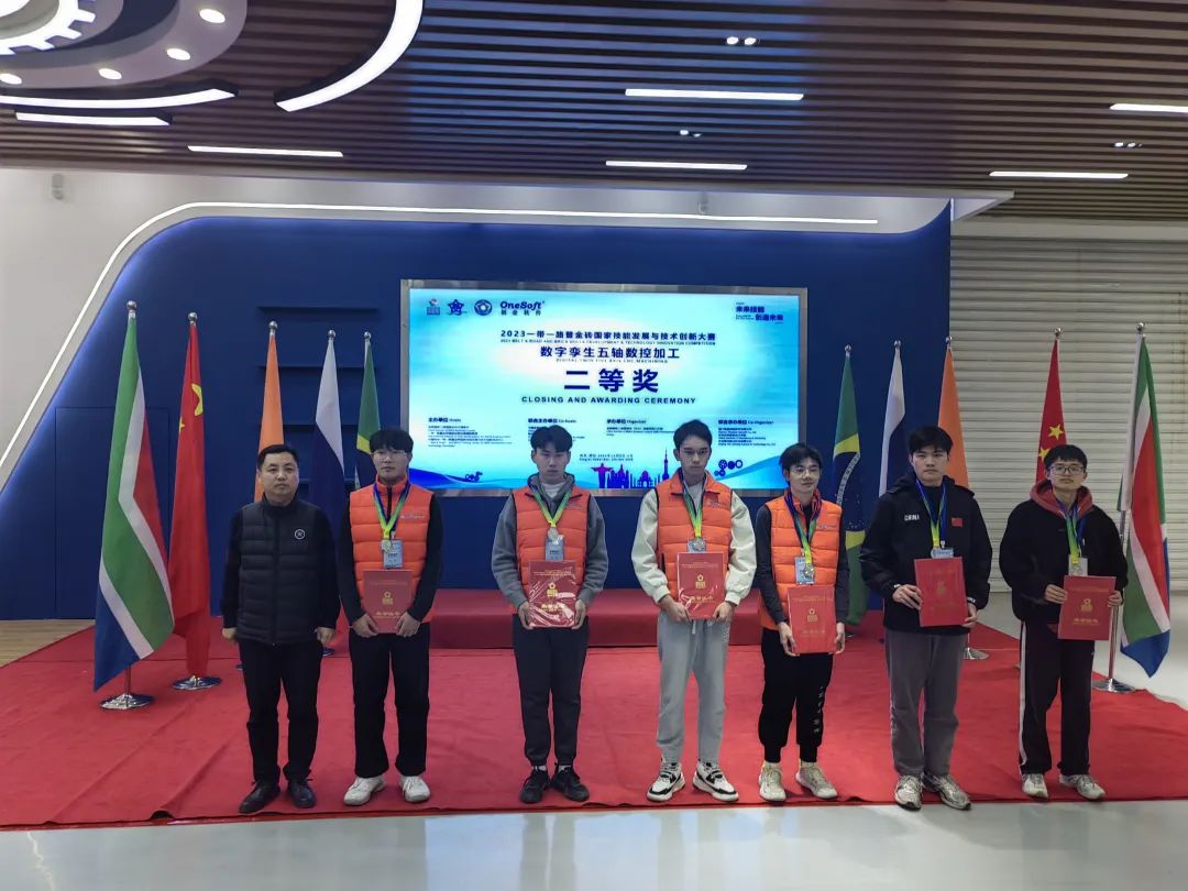 2023年12月2日-3日,2023一带一路暨金砖国家技能发展与技术创新大赛“数字孪生五轴数控加工”赛项在河北机电职业技术学院举办,来自全国36个职业院校的参赛队同台竞技,我校机械工程学院学生周继寰获得此赛项二等奖,安帅杰老师获得“优秀指导教师”称号。