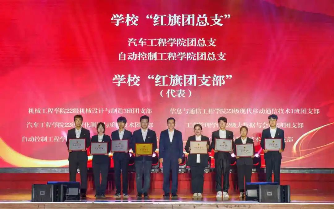 伊焕斌为学校“红旗团总支”“红旗团支部”获奖集体代表颁奖