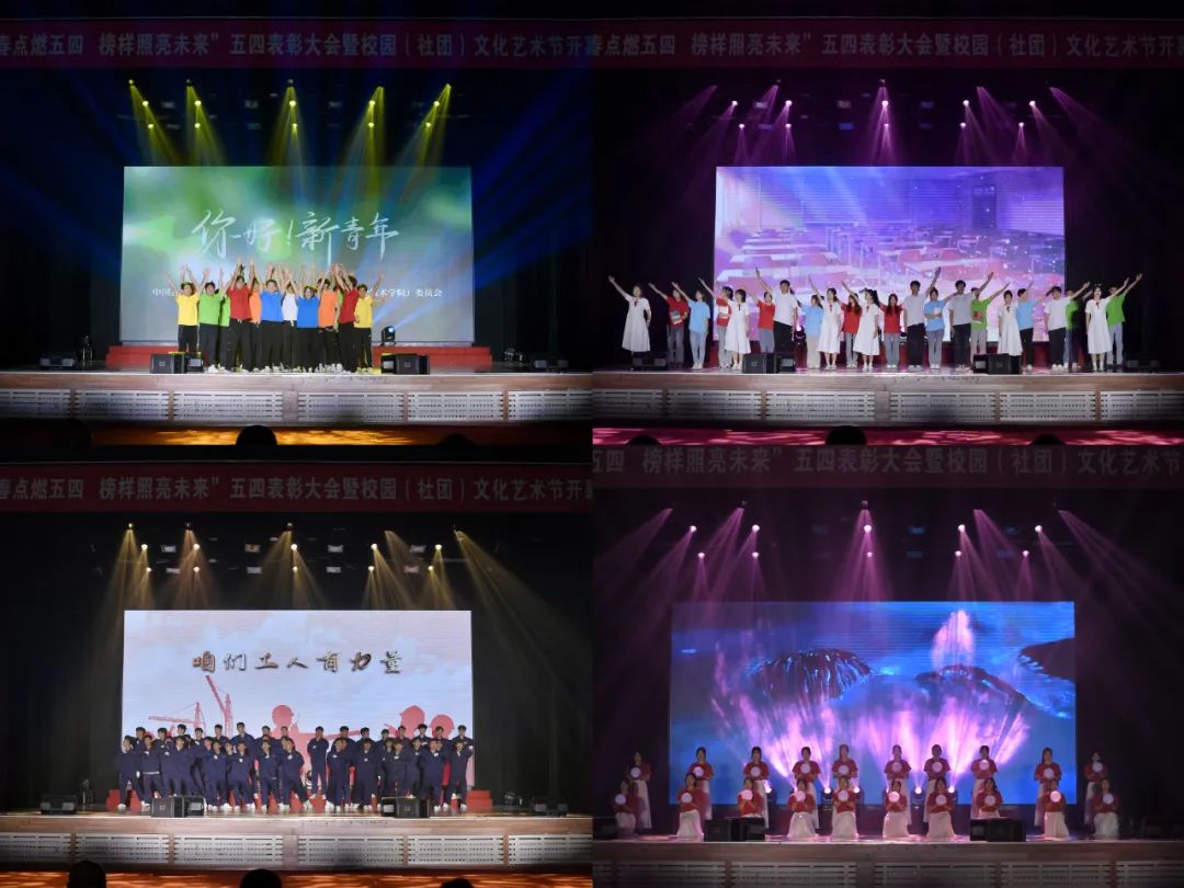表彰大会中,原创歌舞《你好,新青年》,朝气蓬勃、青春洋溢。新时代青年学子在舞台上铺开一幅敢于追梦、筑梦、圆梦的崭新画卷。铿锵有力的音乐诗剧《青春之名》讲述青年学子青春故事,筑牢时代的印记,书写人生华章;诗朗诵《我骄傲,我成长在共和国工匠的摇篮》告诉莘莘学子,路虽远,行则将至,事虽难,做则可成,要怀揣报效祖国的志向,接过前辈手中的接力棒,努力成为新时代大国工匠;合唱《咱们工人有力量》展现新时代工匠精神,在时代号角声中,以新世纪的大国工匠身份,挑起中国工业振兴的重担;舞蹈《天天向上》表现青春是最亮丽的风景,青年学子以坚定的信念展现出无尽的活力和潜力,成为闪闪发光的青春之星。歌舞《和你一样》展现青年学子用汗水浇灌梦想,用时间磨砺技艺,用信念铸就辉煌。情景表演《如愿》将演出推向高潮,全场师生共同追忆觉醒年代,一起畅想未来,不负美好年华,再续青春诗篇。